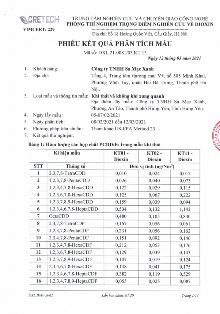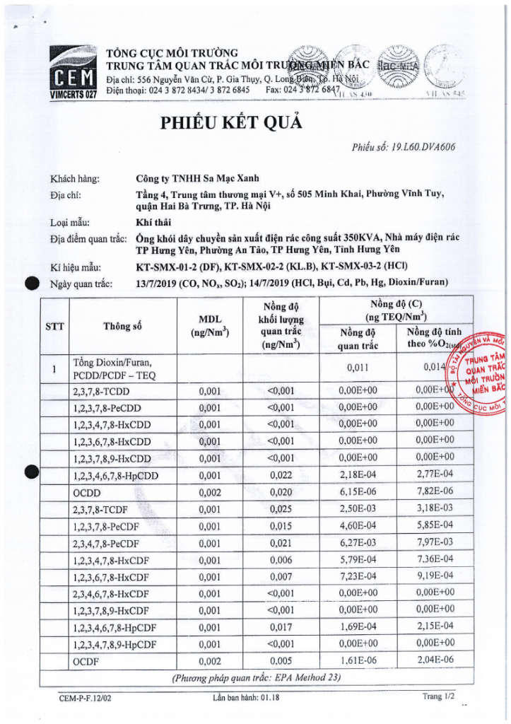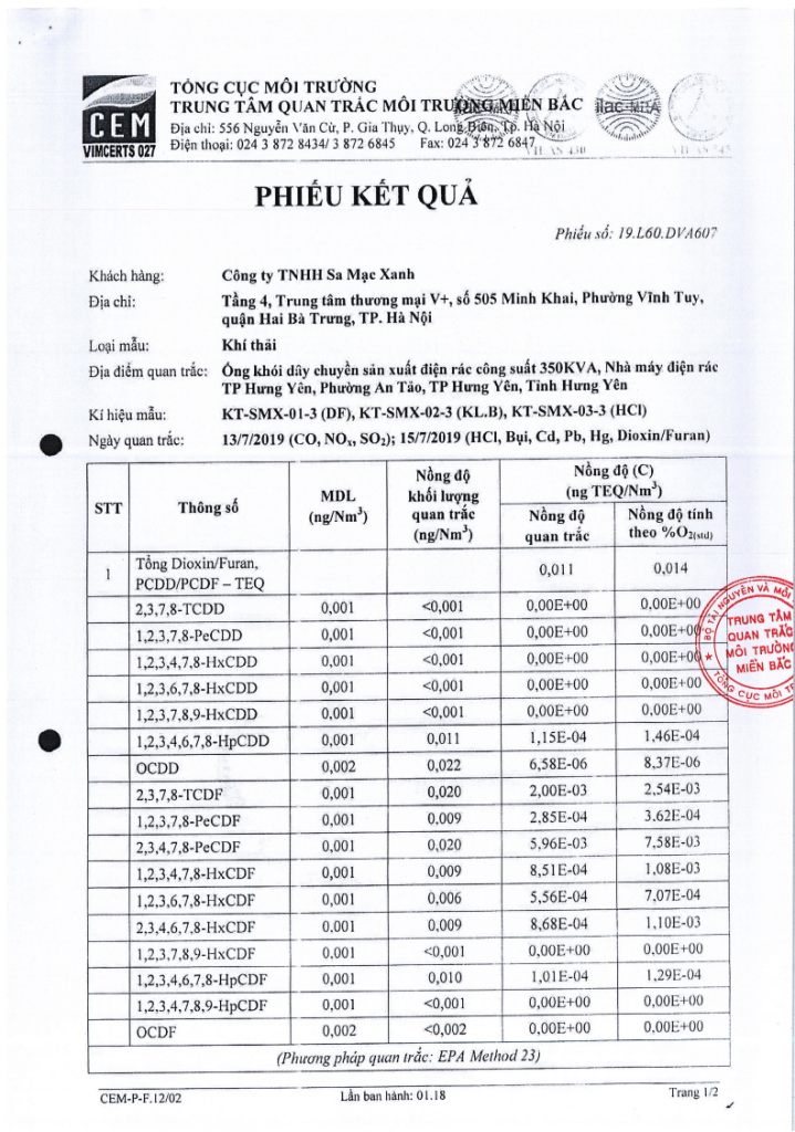 – Kết quả tại nhà máy của Do Green là kết quả trung bình của các lần quan trắc, đo kiểm thực tế tại nhà máy khí hoá chất thải rắn của Do Green do CEM và CRETECH thực hiện, dưới sự giám sát của BTNMT, STNMT tỉnh Hưng Yên và cư dân khu vực lân cận