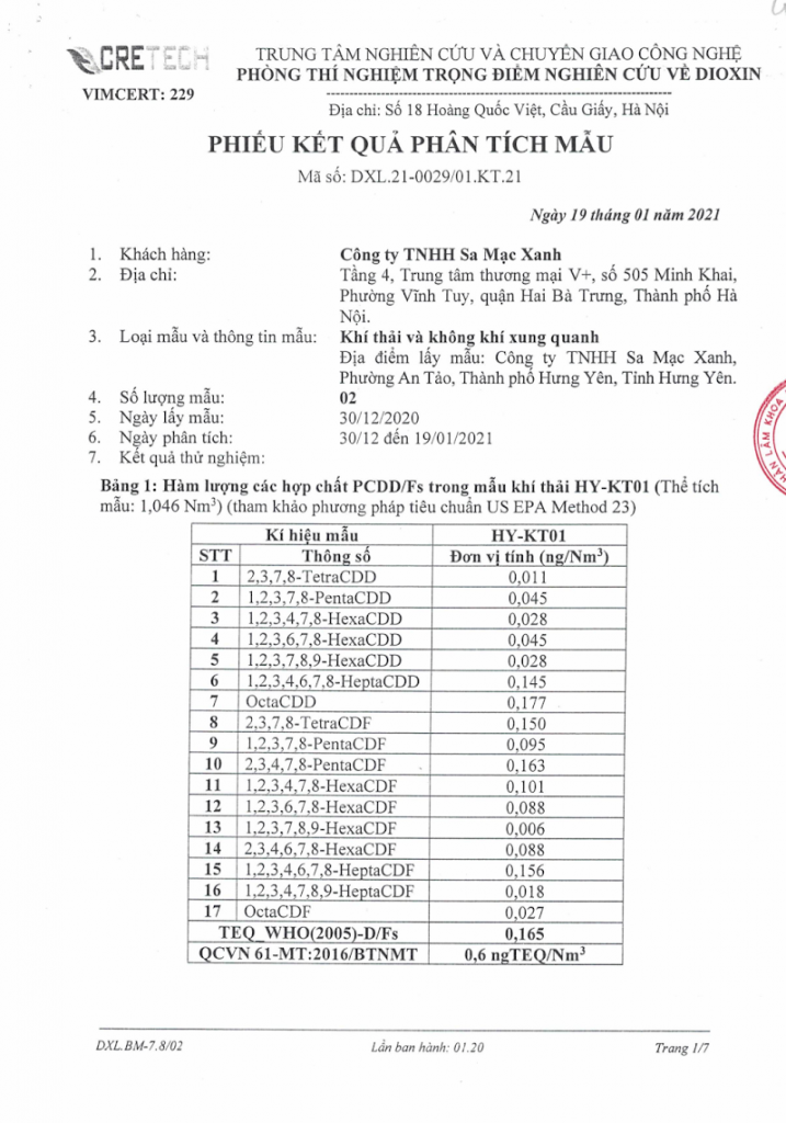 Kết quả đo kiểm của CRETECH (1/2021)